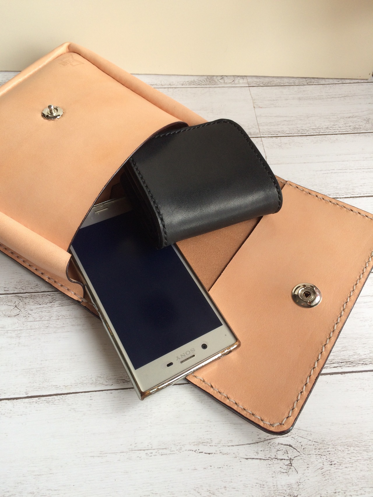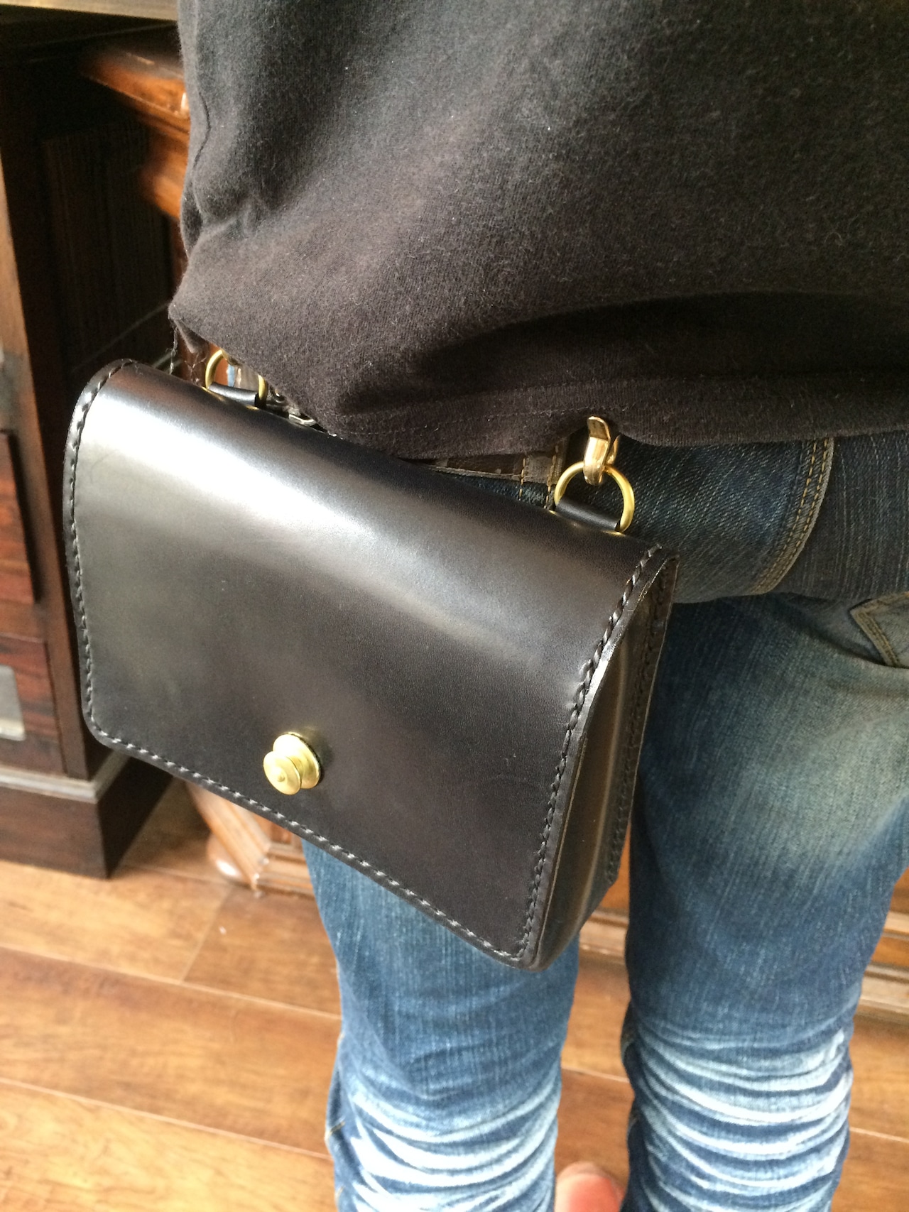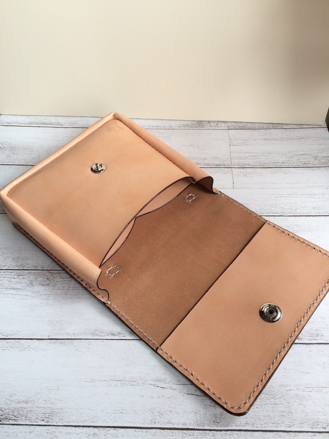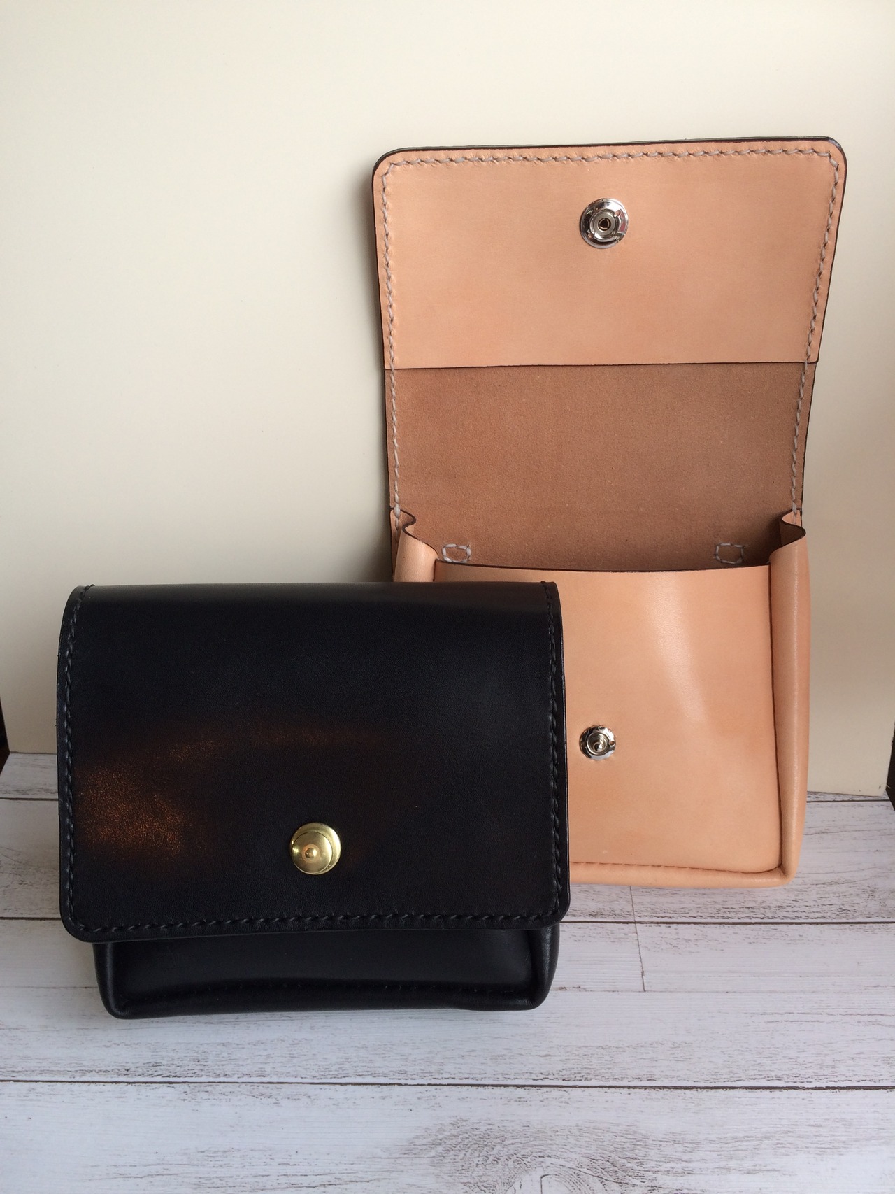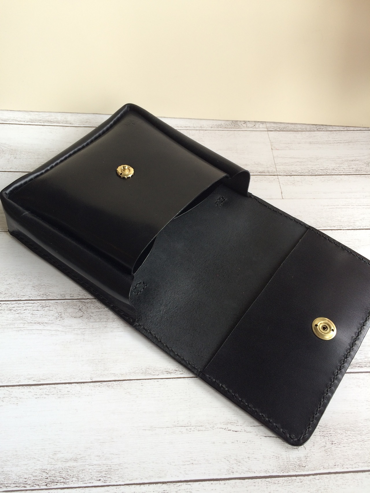 厚みのある頑丈な革を使用している為、到着直後は閉まりにくい可能性がありますが、使っていくうちに柔らかく、馴染んできますのでその変化も楽しみながら使って頂けると幸いです。