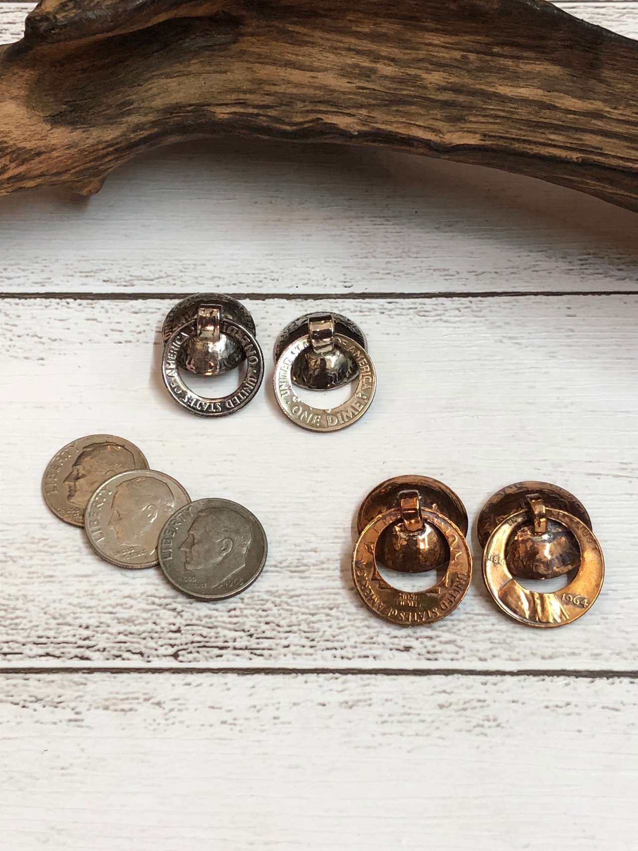 今回はそのドロップハンドルを本物の外貨(1ダイムor1セント)2枚を贅沢に使用し、外貨をもっと身近に使っていただけるよう加工を施しました。