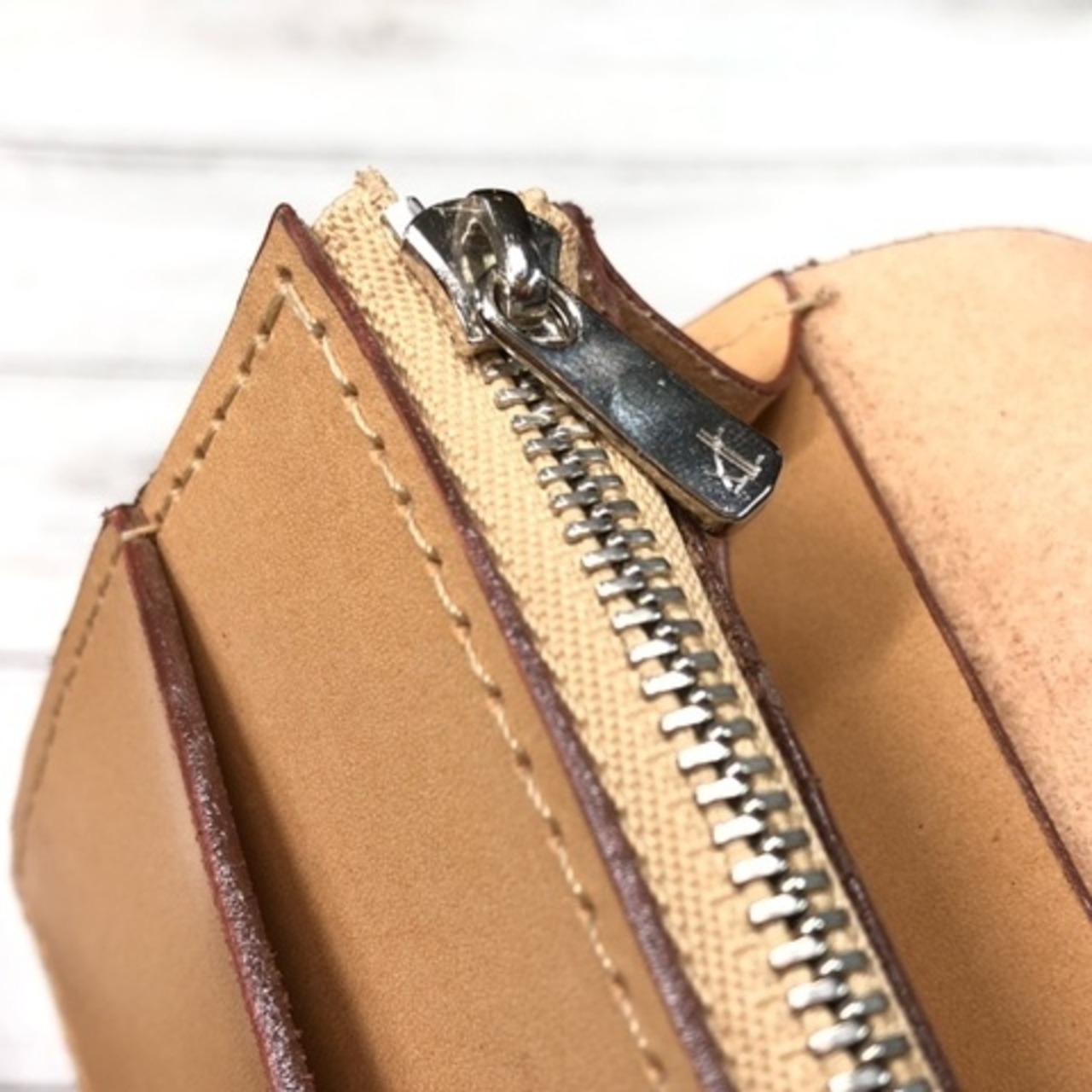 一般的な無垢なヌメ革(牛革)と比べ、グレージング加工革を使用しております為、表面に光沢があり、無加工のヌメ革より比較的汚れに強く、尚且つ経年変化も楽しめますので革製品初心者の方でも気兼ねなくお使いいただけます。