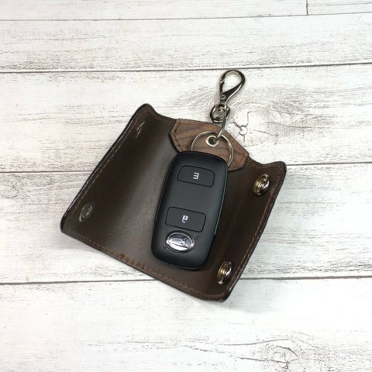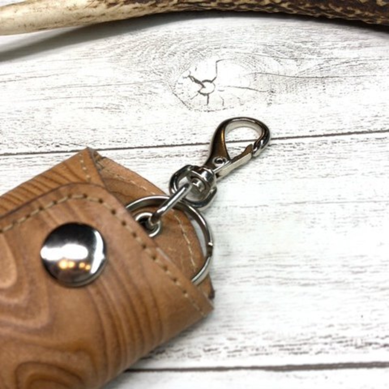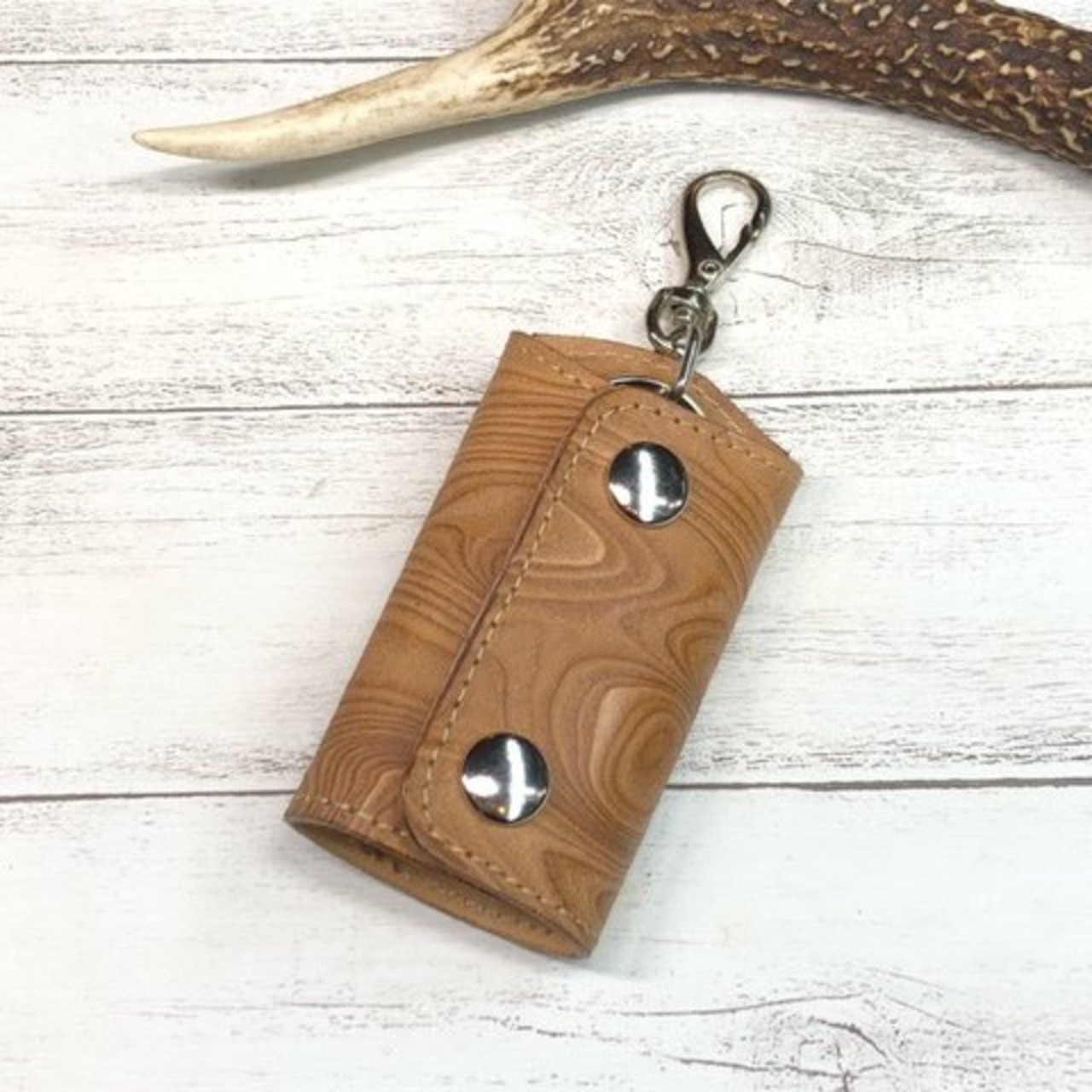 こちらは一見木製かのような雰囲気が特徴の《スキモレザー(漉き模様革)》を使用したスマートキーケースになります。
