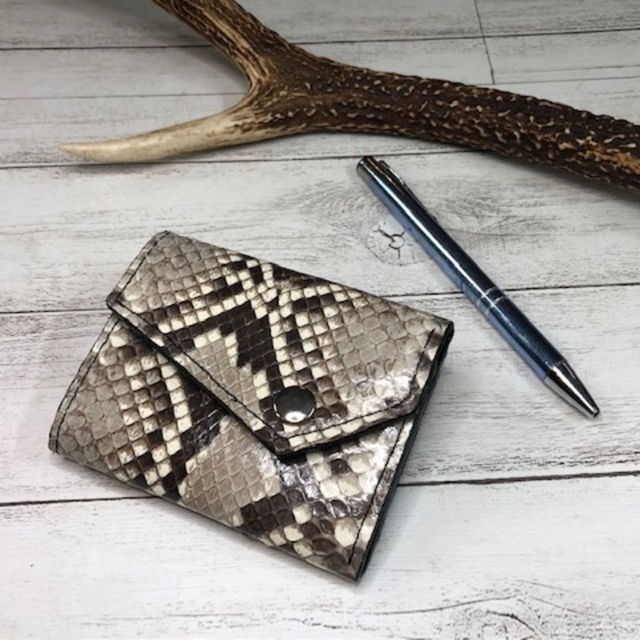 こちらは《ダイヤモンドパイソン(網目ニシキヘビ)》の革を使用したミニウォレットになります。