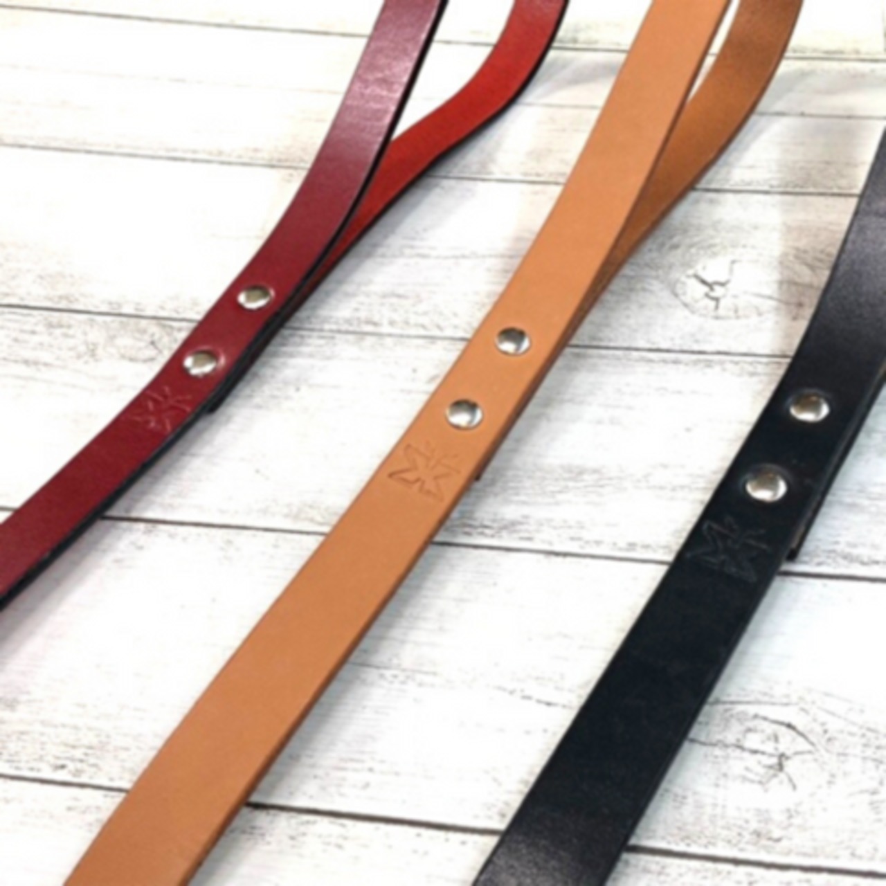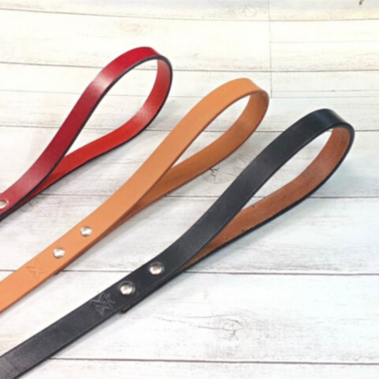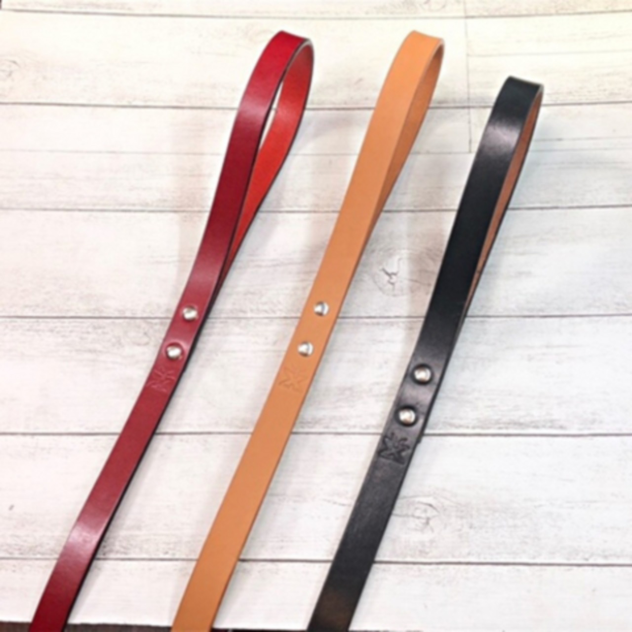 人工皮革は一切使用せず、全て厚みのある一枚革で製作をしている為ひび割れや破れる心配が極端に少なく、小型犬~大型犬まで幅広くご使用いただけます。