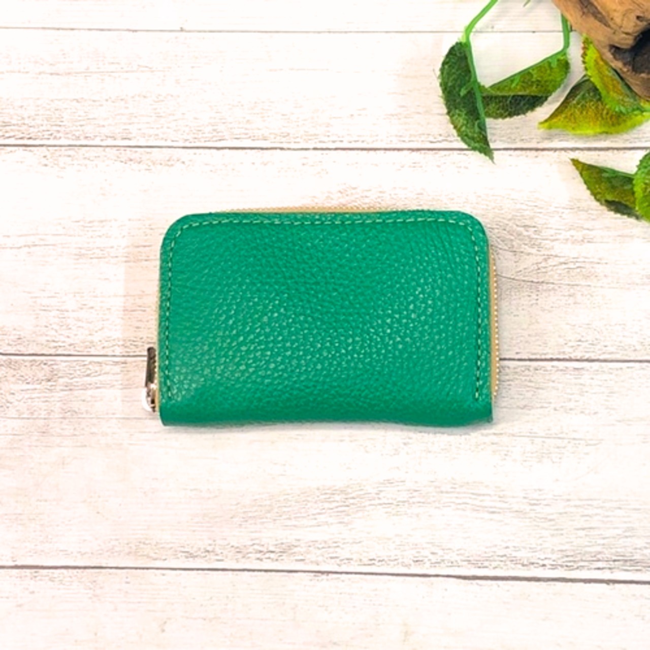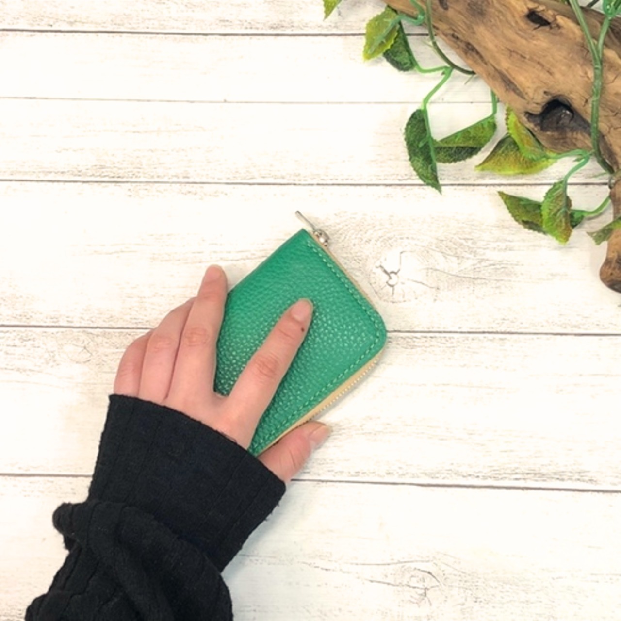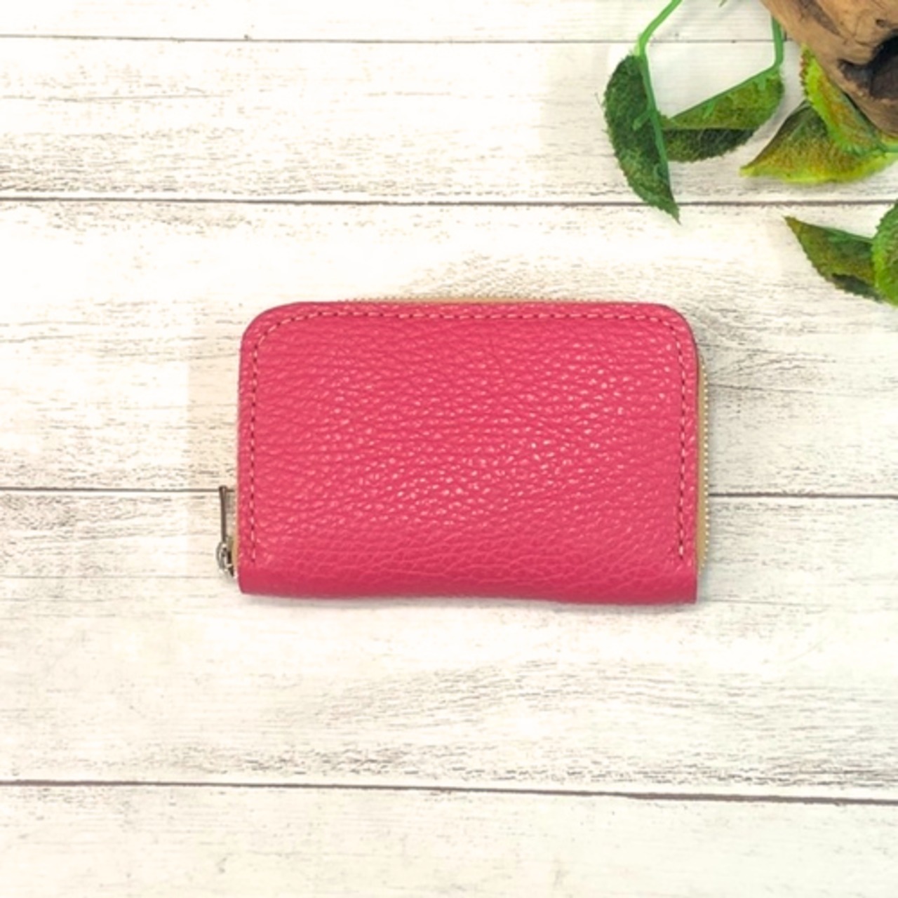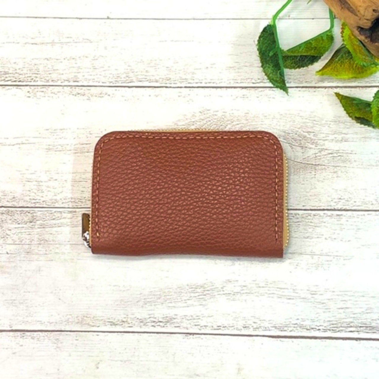 しっとりとした風合いが魅力的な本革素材を使用しておりますので、手のひらにすっぽりおさまるサイズ感が持ち運びにも便利です☆