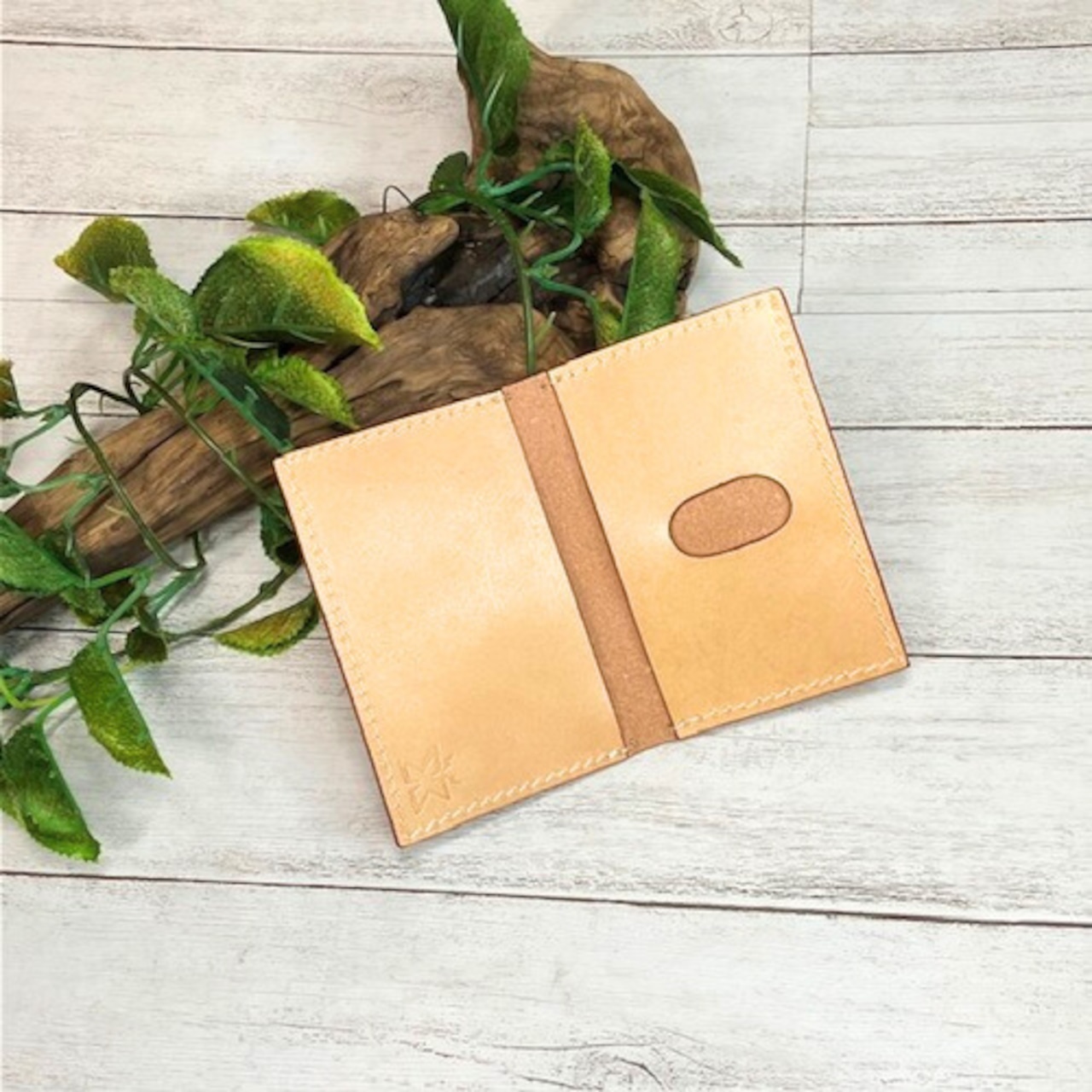 高品質のヌメ革を使用した2つ折りパスケースです。